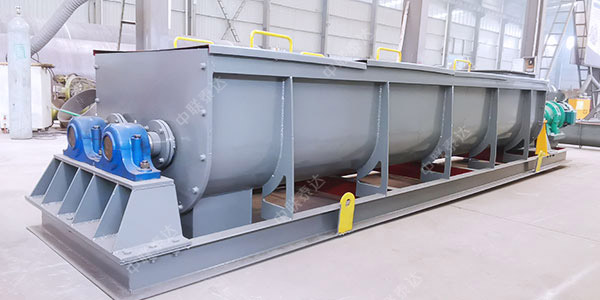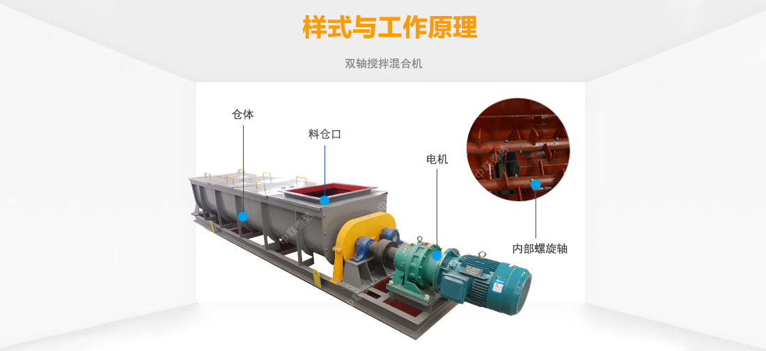 雙軸攪拌混合機(jī)機(jī)利用兩根呈對(duì)稱(chēng)狀的螺旋軸的同步旋轉(zhuǎn),在輸送干灰等粉狀物料的同時(shí)加水(或者粘接劑)攪拌,均勻加濕混合干灰粉狀物料。用于增濕作用時(shí),可以達(dá)到使加濕物料不冒干灰又不會(huì)滲出水滴的工藝目標(biāo),從而便于加濕灰裝車(chē)運(yùn)輸或轉(zhuǎn)入其它輸送設(shè)備;用于混合作用時(shí),可以達(dá)到粘接劑和干料的均勻混合,還可以多級(jí)串聯(lián)使用,或和其他混合設(shè)備組合應(yīng)用。 主要適用于火力發(fā)電廠(chǎng)、礦山等行業(yè)。